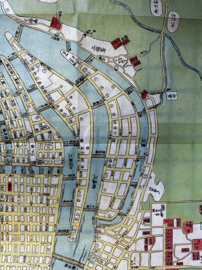 渡辺橋に淀屋橋に四ツ橋、現存しない橋もあるけど、当時の地図にははっきり載っている。